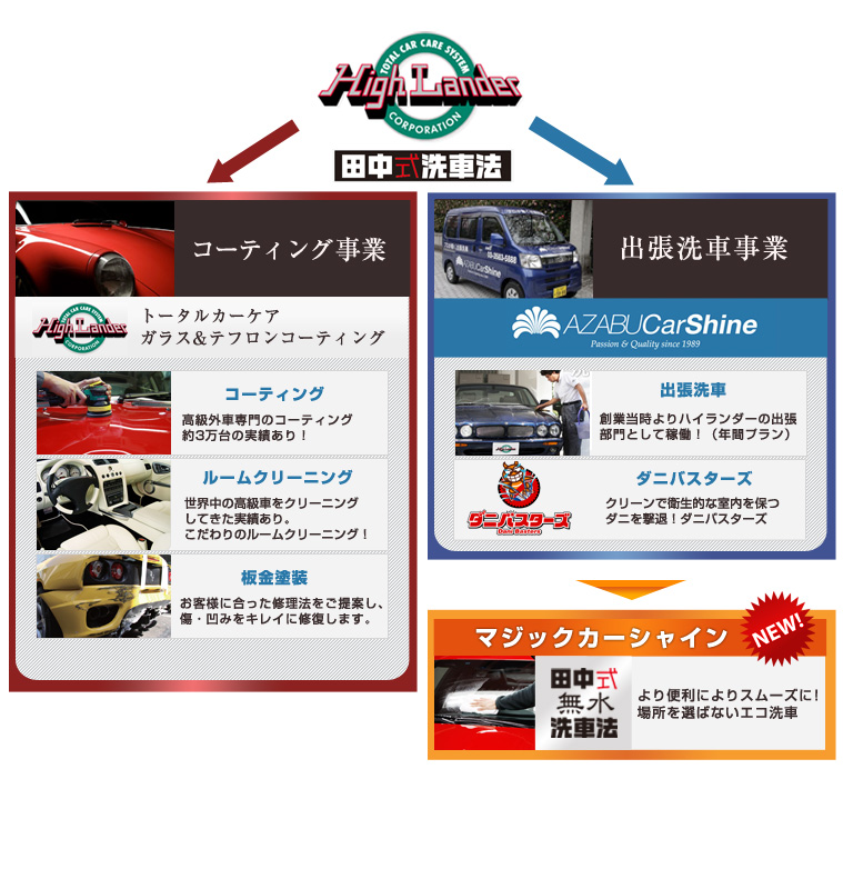 ※麻布カーシャインは「高級車コーティングのハイランダー」の出張洗車専門ブランドです。